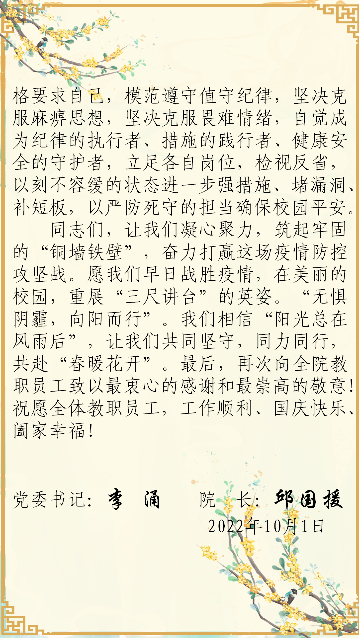 在第38個教師節(jié)致畢節(jié)工業(yè)職業(yè)技術(shù)學(xué)院全體教職工的慰問信