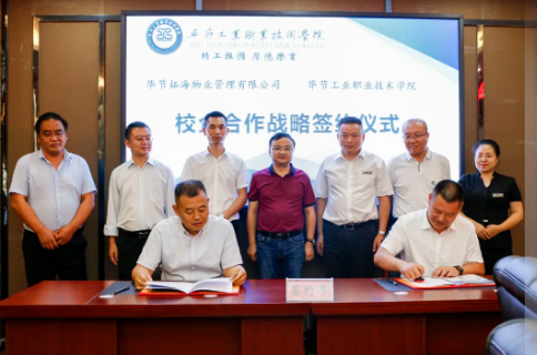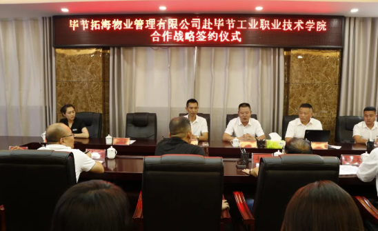 為深入貫徹落實習(xí)近平總書記對技能人才工作重要指示精神,切實做好新時代技能人才工作,9月3日,畢節(jié)拓海物業(yè)管理有限公司與畢節(jié)工業(yè)職業(yè)技術(shù)學(xué)院校企合作戰(zhàn)略協(xié)議簽訂儀式在學(xué)院同心樓三樓會議室舉行。畢節(jié)拓海物業(yè)管理有限公司總經(jīng)理楊月強、常務(wù)副總經(jīng)理邱鋒一行,學(xué)院黨委書記李涌,黨委副書記、院長邱國援,黨委委員、副院長吳家文、相關(guān)部門負(fù)責(zé)人及教師代表出席儀式。簽約儀式由邱國援主持。