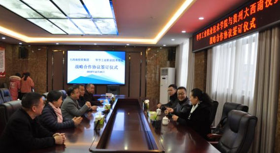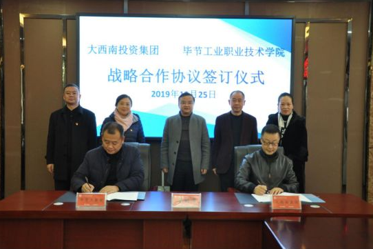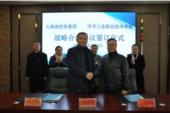 智慧共生,合作共贏。為深入貫徹《國家職業(yè)教育改革實施方案》,加強校企合作、人才培養(yǎng)和培訓,2019年12月25日,畢節(jié)工業(yè)職業(yè)技術學院與大西南投資集團有限責任公司校企合作戰(zhàn)略協議簽訂儀式在學院同心樓三樓會議室正式舉行。