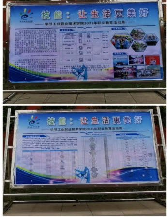 為了營造職業(yè)教育活動(dòng)周氛圍,讓職業(yè)教育精神深入學(xué)生心中,我院制作了系列宣傳展板,緊扣職教活動(dòng) “技能:讓生活更美好” 宣傳主題,大力宣傳和展示我院學(xué)生2021年參加貴州省職業(yè)技能大賽獲獎(jiǎng)學(xué)生風(fēng)采。并結(jié)合各專業(yè)特點(diǎn)及國家職業(yè)技能標(biāo)準(zhǔn)、職業(yè)技能鑒定和考核相關(guān)要求,為即將開展的學(xué)院首屆學(xué)生職業(yè)技能大賽做好宣傳動(dòng)員工作,從而鼓勵(lì)廣大學(xué)生努力學(xué)習(xí),練就專業(yè)技能。