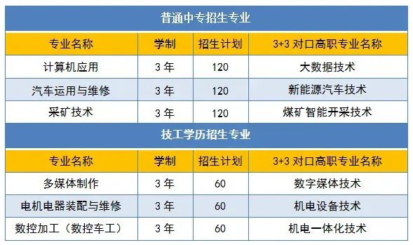注:2022年招生的中?;蚣脊I(yè)均可直接報(bào)讀我院“3+3”中高職貫通班,“3+3”中高職貫通班在校學(xué)習(xí)時(shí)間為六年,前3年在中專部就讀,后三年進(jìn)入本院對(duì)口高職專業(yè)學(xué)習(xí)。